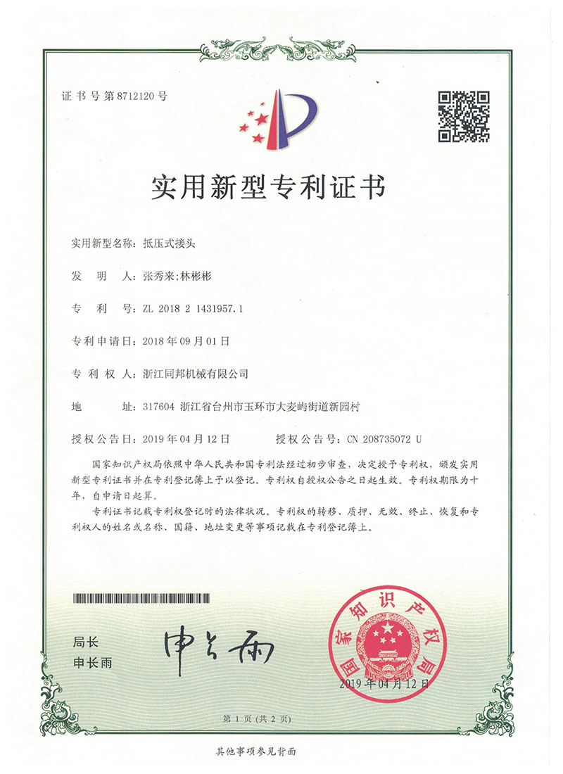 浙江同邦機(jī)械有限公司是一家主要生產(chǎn)液壓流體連接件、卡套式管接頭、過(guò)渡接頭、軟管接頭、軟管總成、硬管總成、油缸頭、汽車零部件,集研發(fā)、制造和銷售為一體的綜合性公司。我們擁有專業(yè)的設(shè)備和技術(shù)人員,并且通過(guò)IATF16949國(guó)際質(zhì)量管理體系認(rèn)證和8項(xiàng)產(chǎn)品專利。